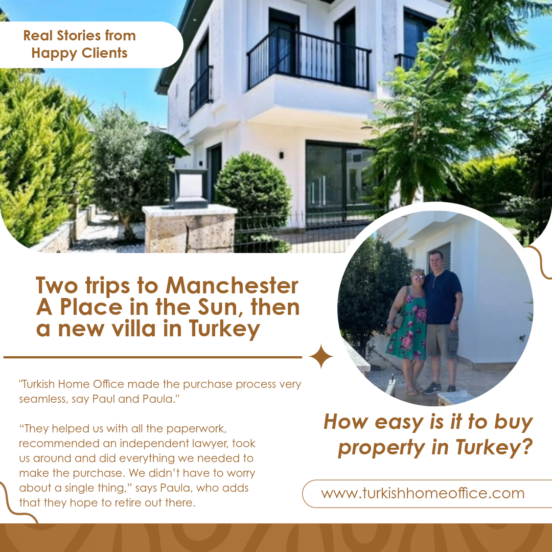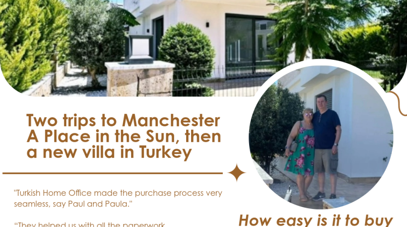 We are delighted to share this interview by A Place in the Sun, featuring one of our valued clients who found their dream villa through us. In this article, they talk about their buying journey, their experience at the exhibition, and why they chose to invest in Turkey. We are proud to have been part of their story and to help turn their dream into reality.